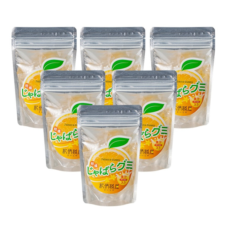 紀伊路で育まれた希少果実「じゃばら」果汁とじゃばら果皮ペーストをグミを作る最大値まで入れ、添加物はなるべく使わないで作りました。「柑橘 じゃばら」独自の香りとほのかな酸味を楽しめる「じゃばらグミ」です。。